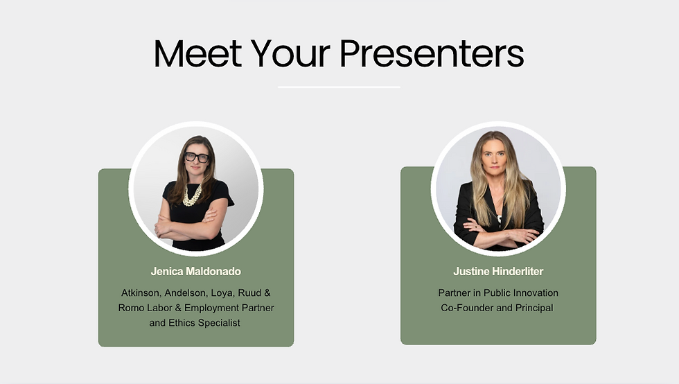 This year, I had the opportunity to return to CALPELRA with my colleague Jenica Maldonado, a seasoned labor and employment attorney and ethics specialist. We built on the session we led in 2024 by going deeper-- not into theory, but into our lived practice. Our session, “Crisis Coordination 2.0,” was a walk-through of an actual workplace crisis we navigated together: one involving regulatory and administrative actions, long-standing labor tension, internal morale and trust issues, and a public narrative we had to work fast to reframe.